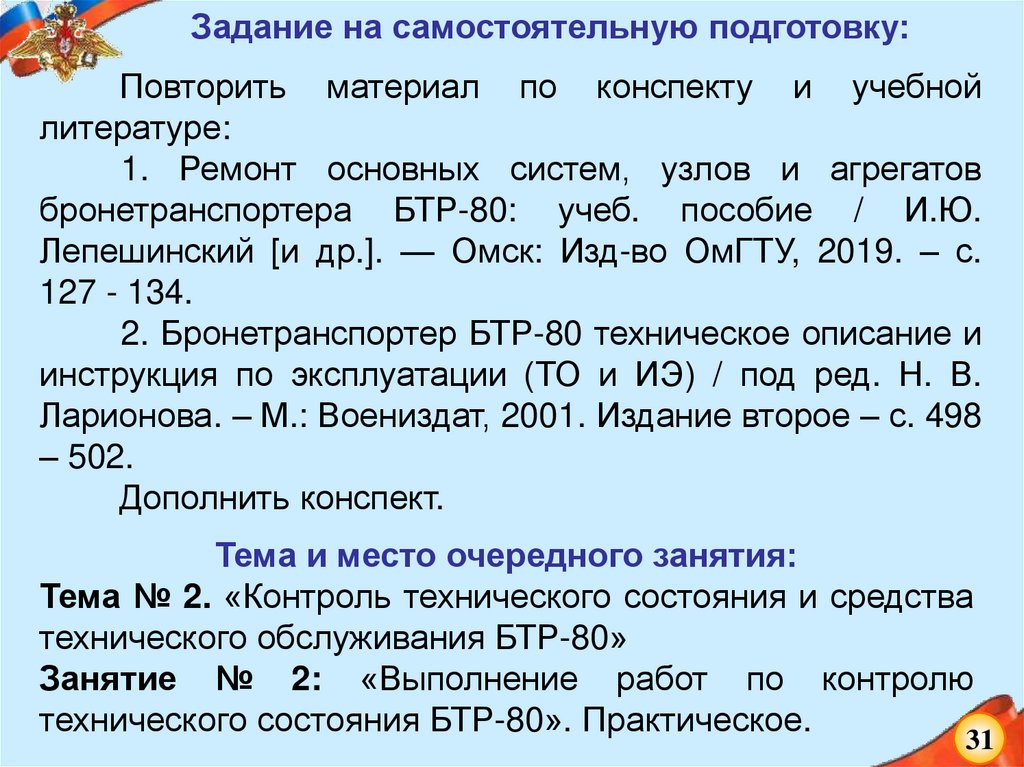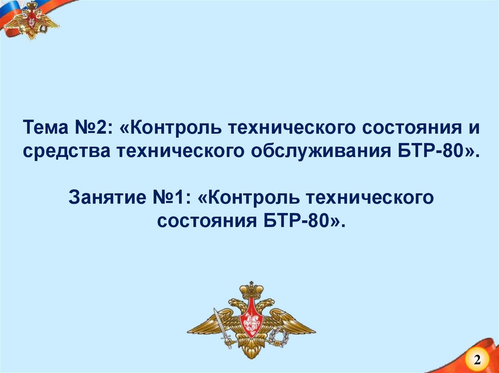 Тема №2: «Контроль технического состояния исредства технического обслуживания БТР-80».