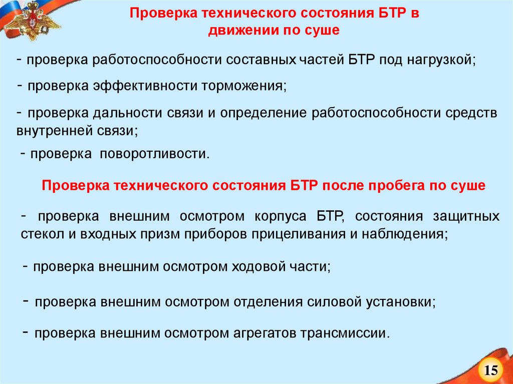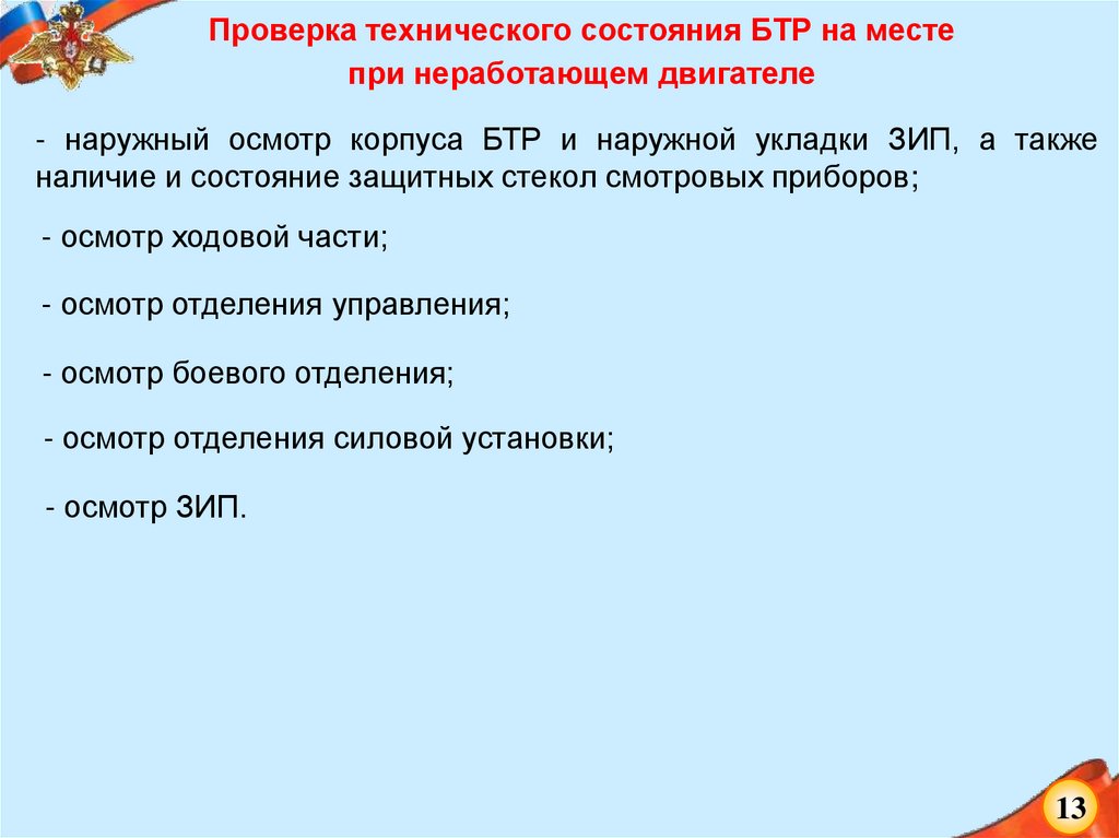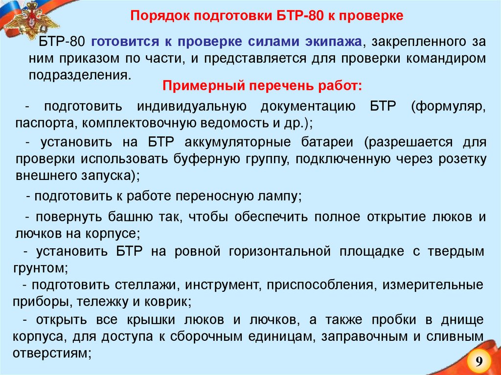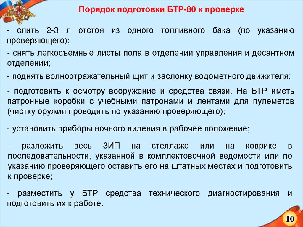 Порядок подготовки БТР-80 к проверкеБТР-80 готовится к проверке силами экипажа, закрепленного за