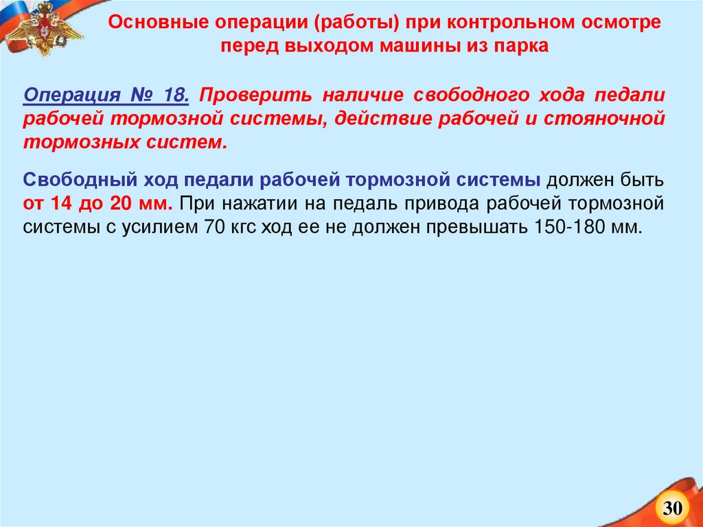 от 14 до 20 мм. При нажатии на педаль привода рабочей тормозной