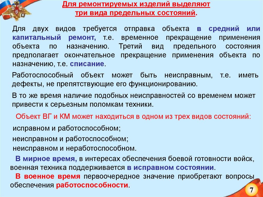 Для ремонтируемых изделий выделяюттри вида предельных состояний.