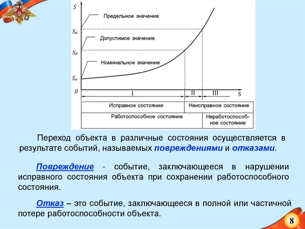 Переход объекта в различные состояния осуществляется врезультате событий, называемых повреждениями и отказами.