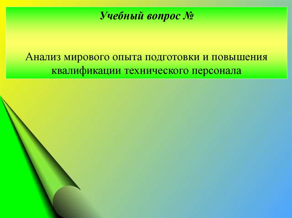 Учебный вопрос №Анализ мирового опыта подготовки и повышения
