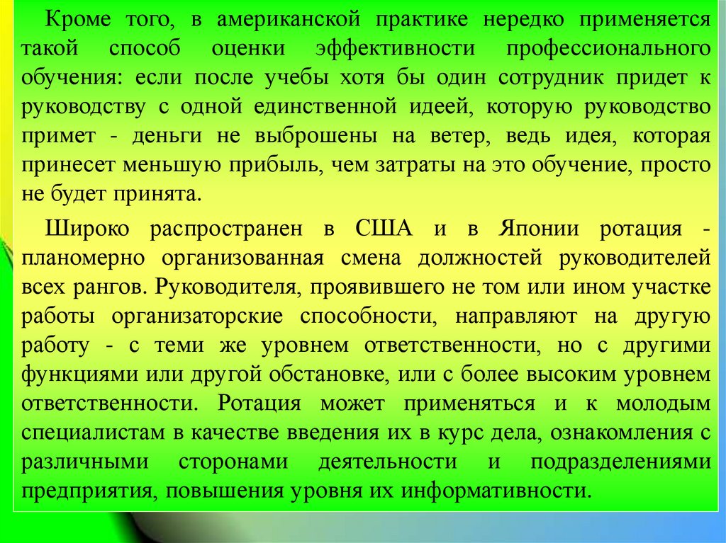 Широко распространен в США и в Японии ротация планомерно организованная смена должностей руководителей