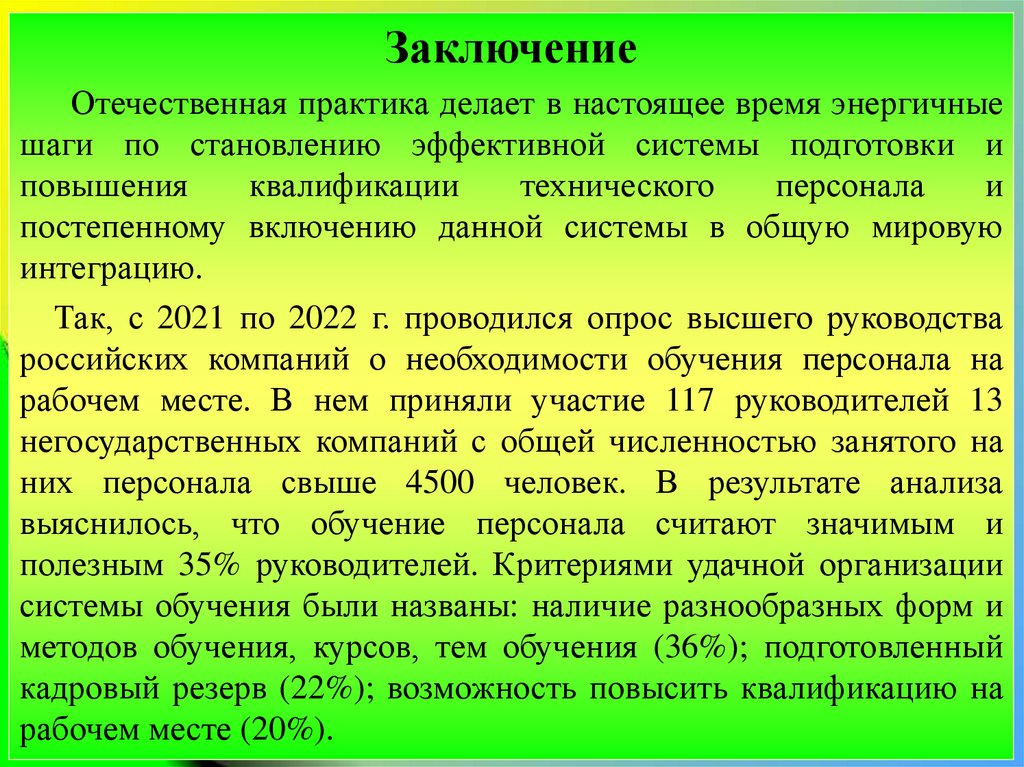 ЗаключениеОтечественная практика делает в настоящее время энергичные