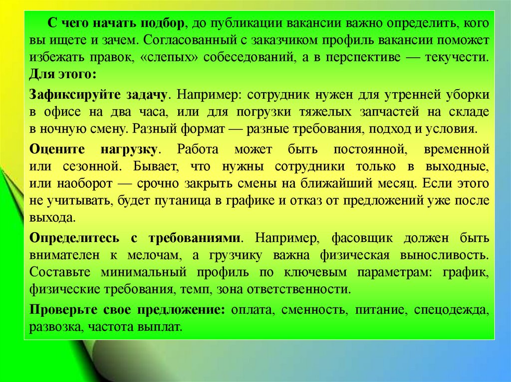 С чего начать подбор, до публикации вакансии важно определить, коговы ищете и зачем. Согласованный с заказчиком профиль вакансии поможет