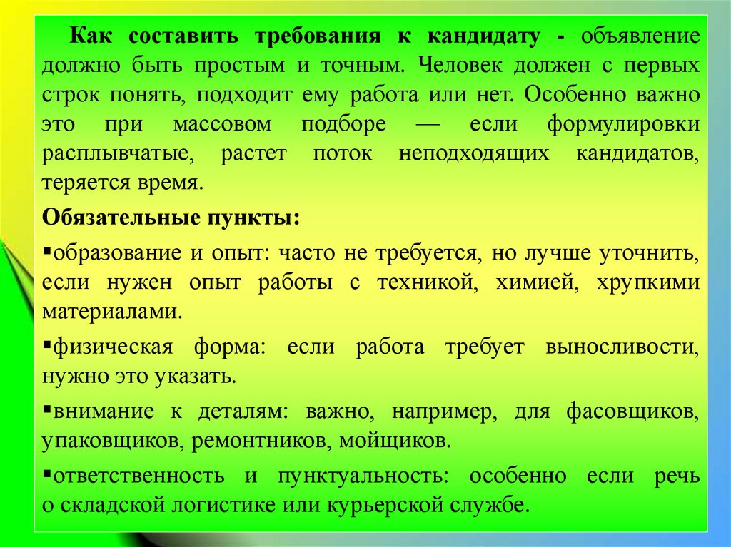 Как составить требования к кандидату - объявлениедолжно быть простым и точным. Человек должен с первых