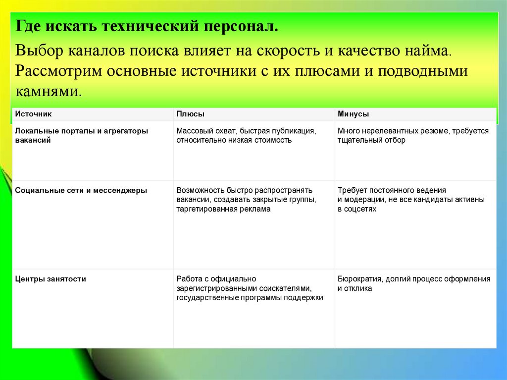 Где искать технический персонал.Выбор каналов поиска влияет на скорость и качество найма.