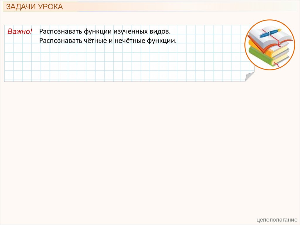 ЗАДАЧИ УРОКАВажно! Распознавать функции изученных видов.