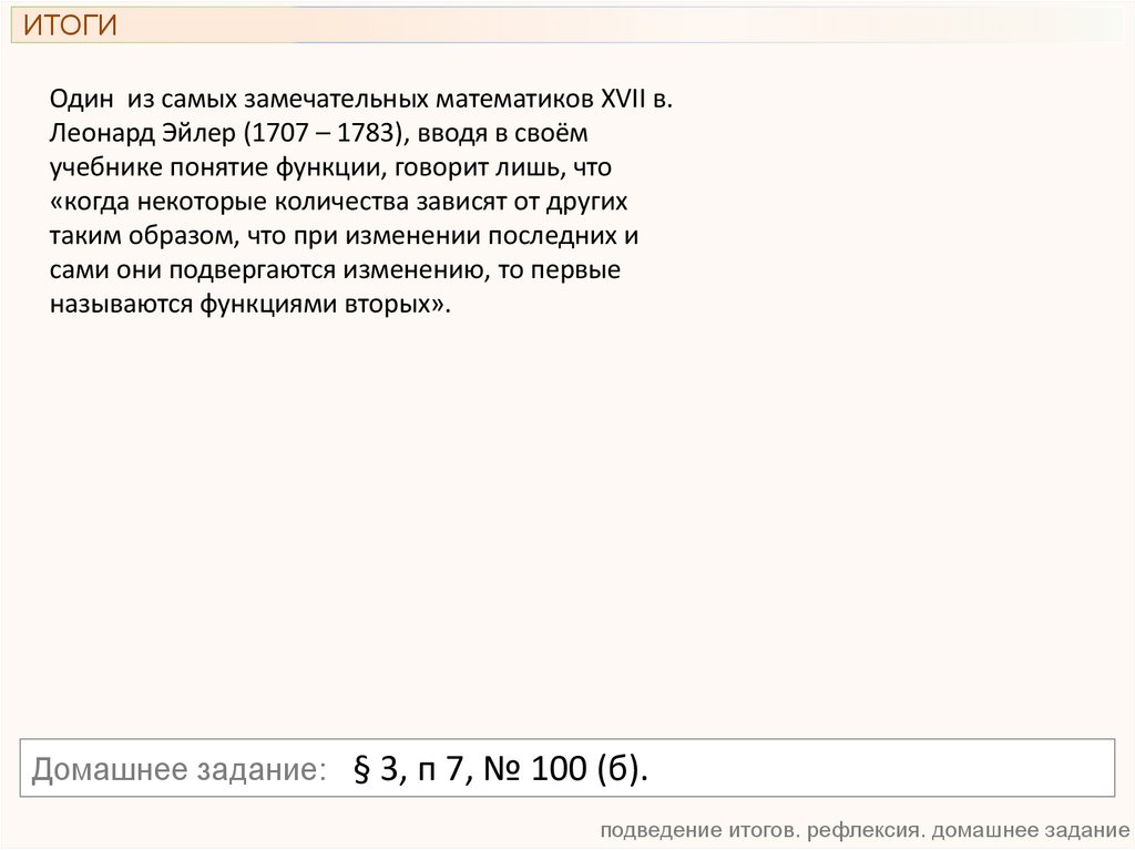 подведение итогов. рефлексия. домашнее задание