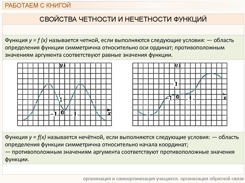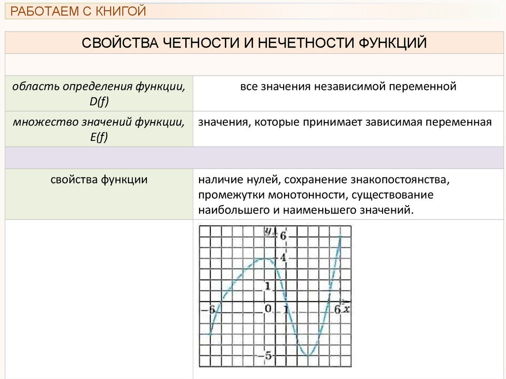 РАБОТАЕМ С КНИГОЙСВОЙСТВА ЧЕТНОСТИ И НЕЧЕТНОСТИ ФУНКЦИЙ