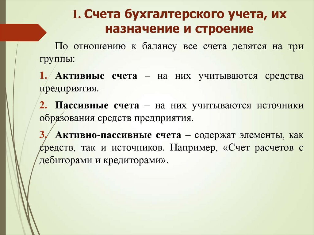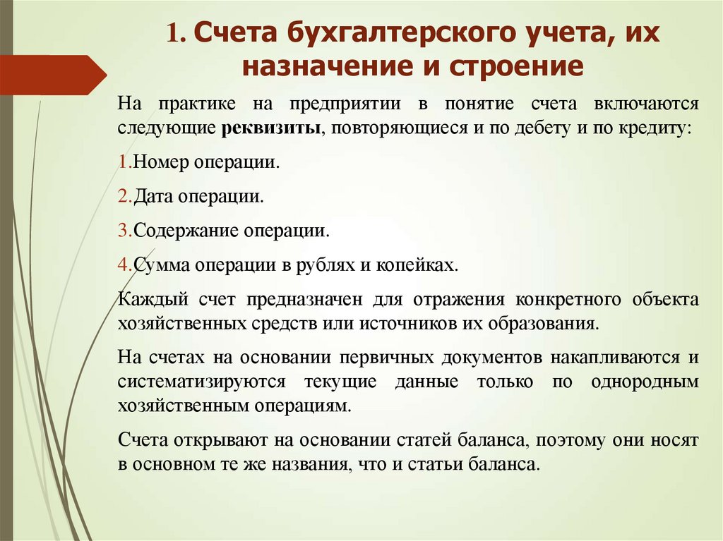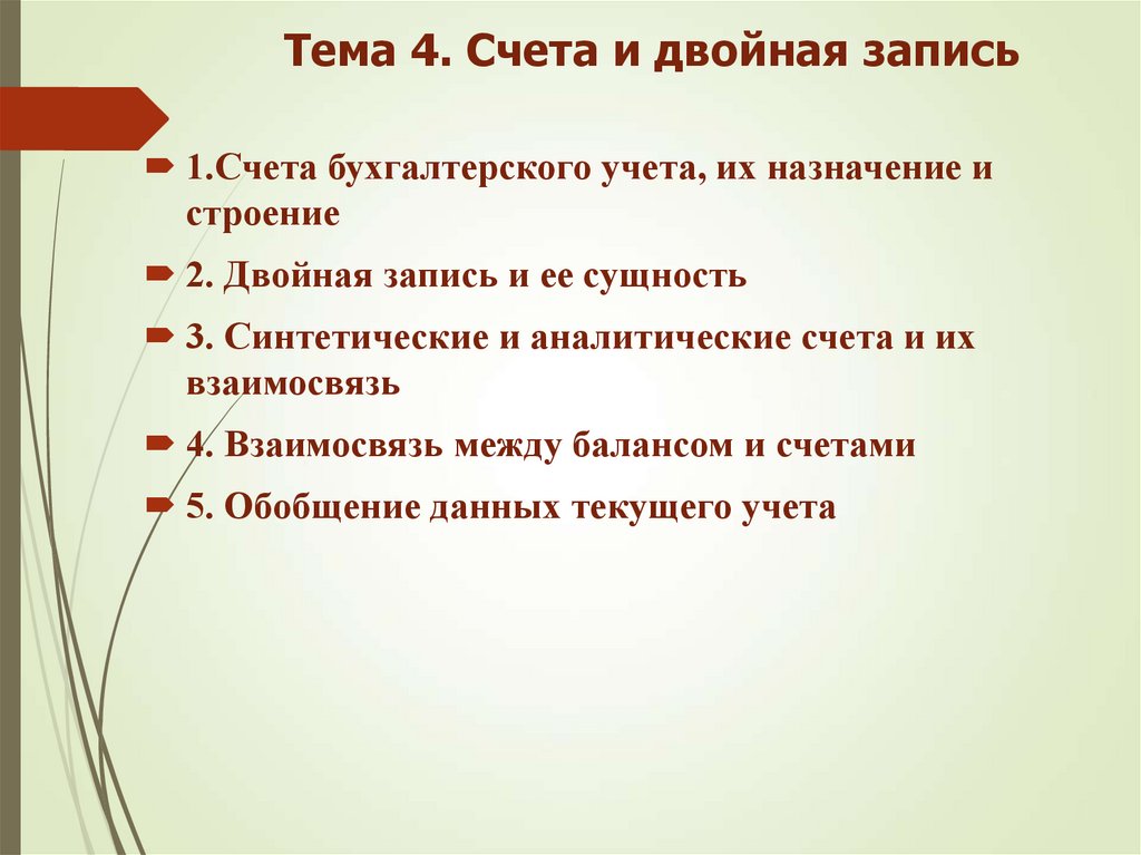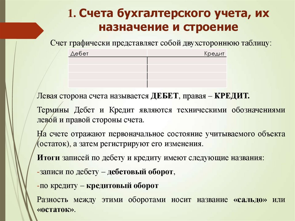 Тема 4. Счета и двойная запись1.Счета бухгалтерского учета, их назначение и