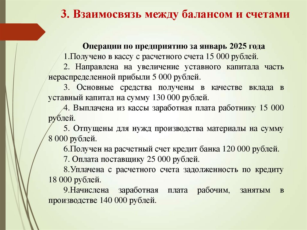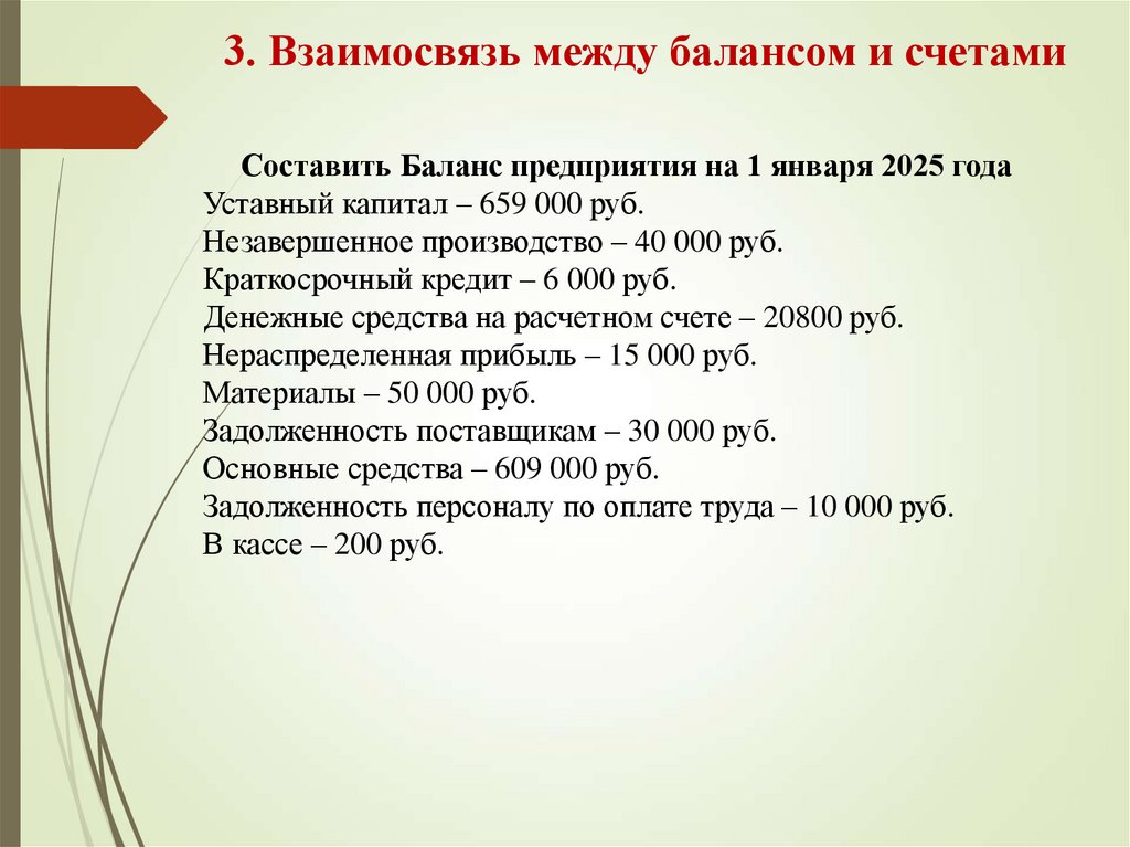 3.Отпущены материалы со склада на 500 тыс.руб.