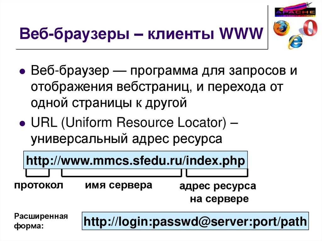Веб-браузеры – клиенты WWWВеб-браузер — программа для запросов и