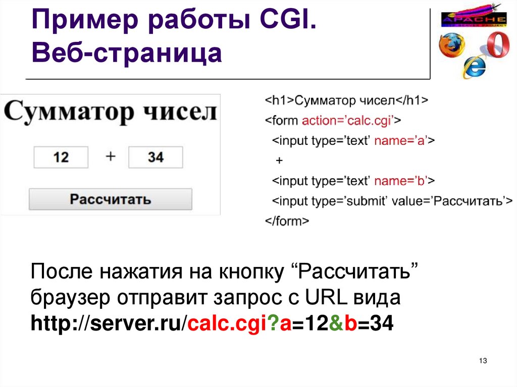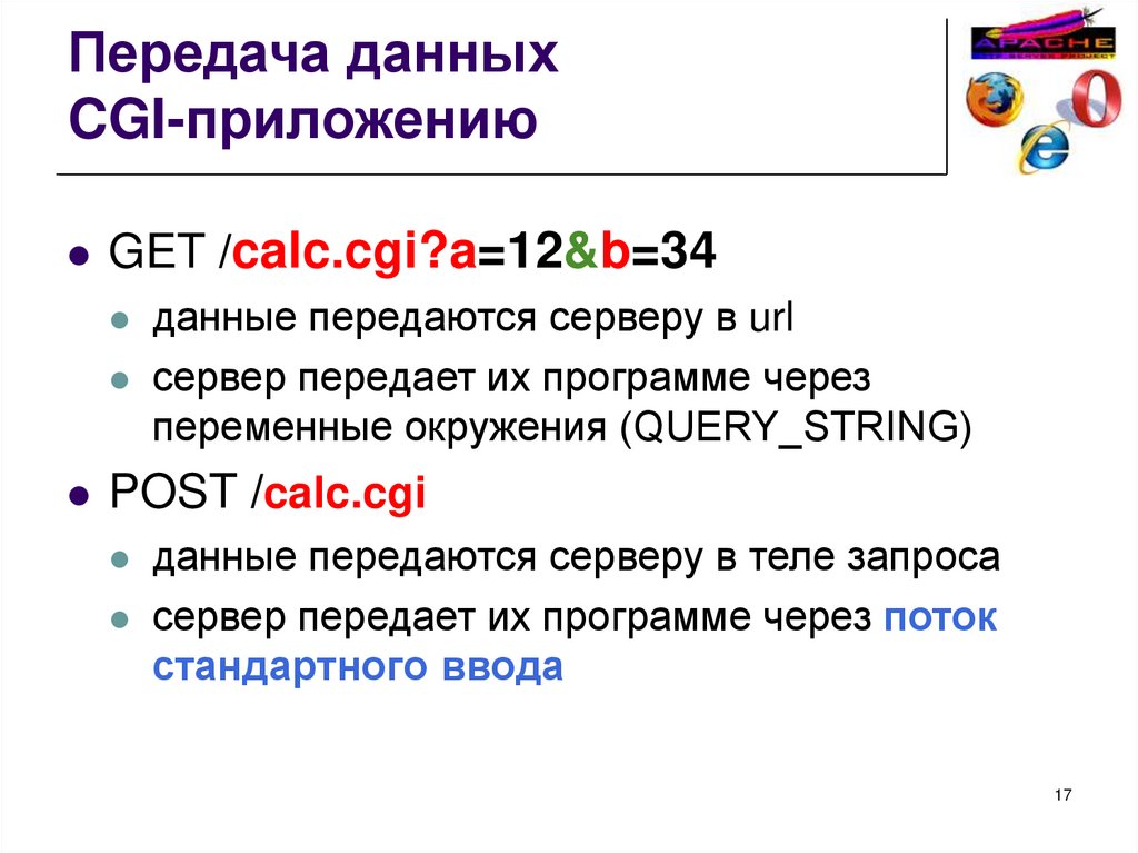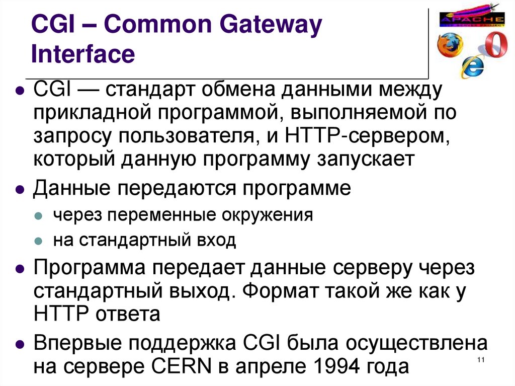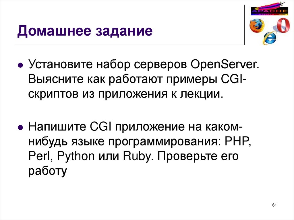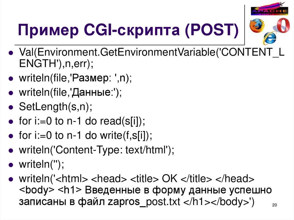 Выясните как работают примеры CGIскриптов из приложения к лекции.