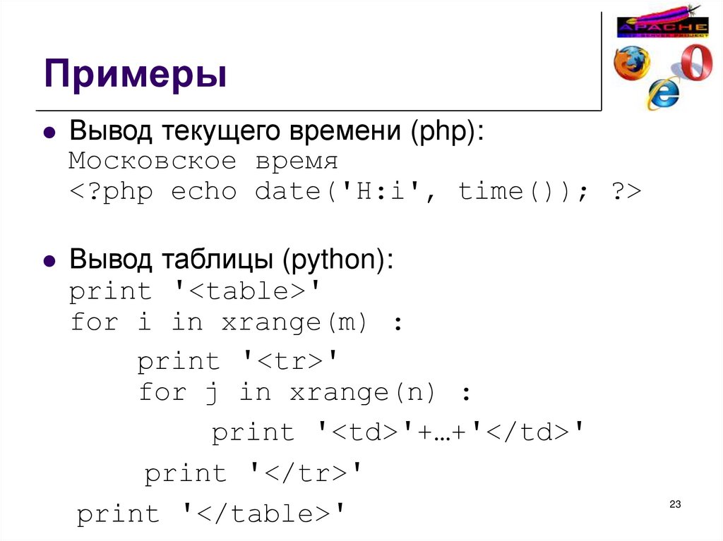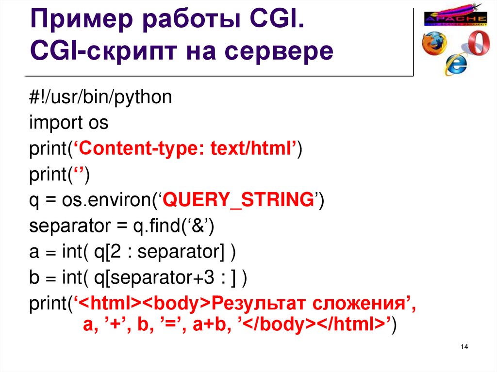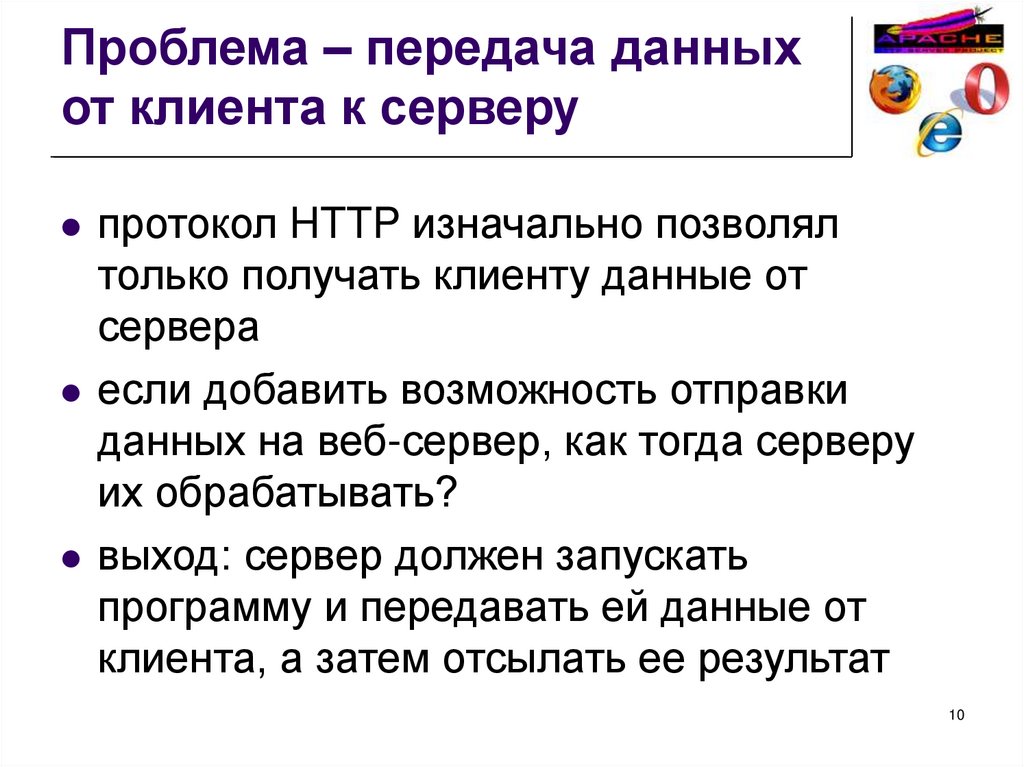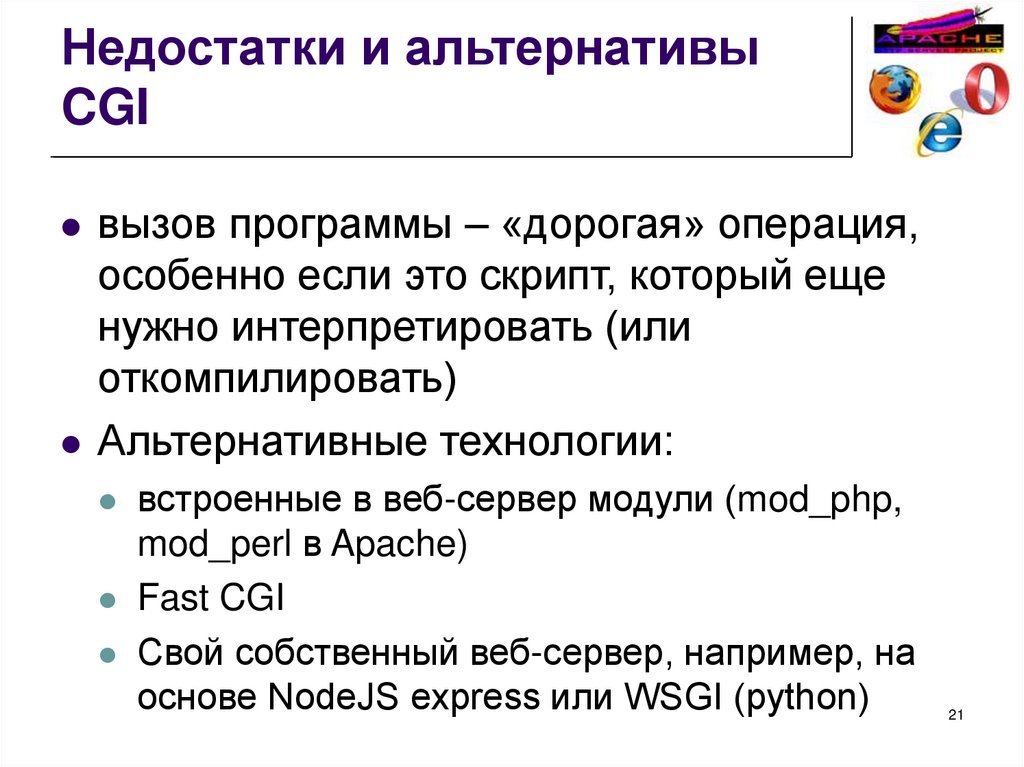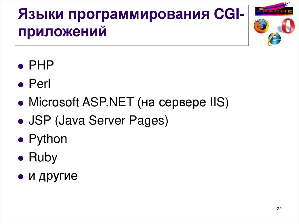 Выясните как работают примеры CGIскриптов из приложения к лекции.