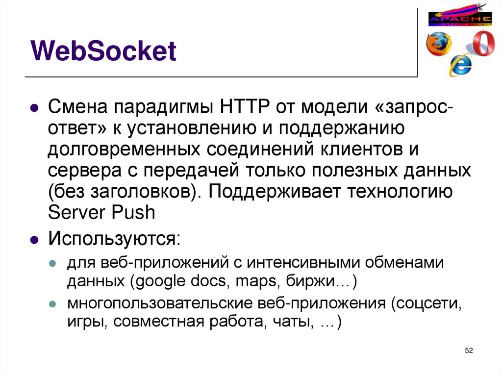 WebSocketСмена парадигмы HTTP от модели «запрос-