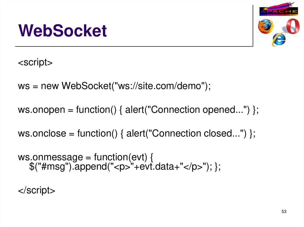 $("#msg").append("<p>"+evt.data+"</p>"); };