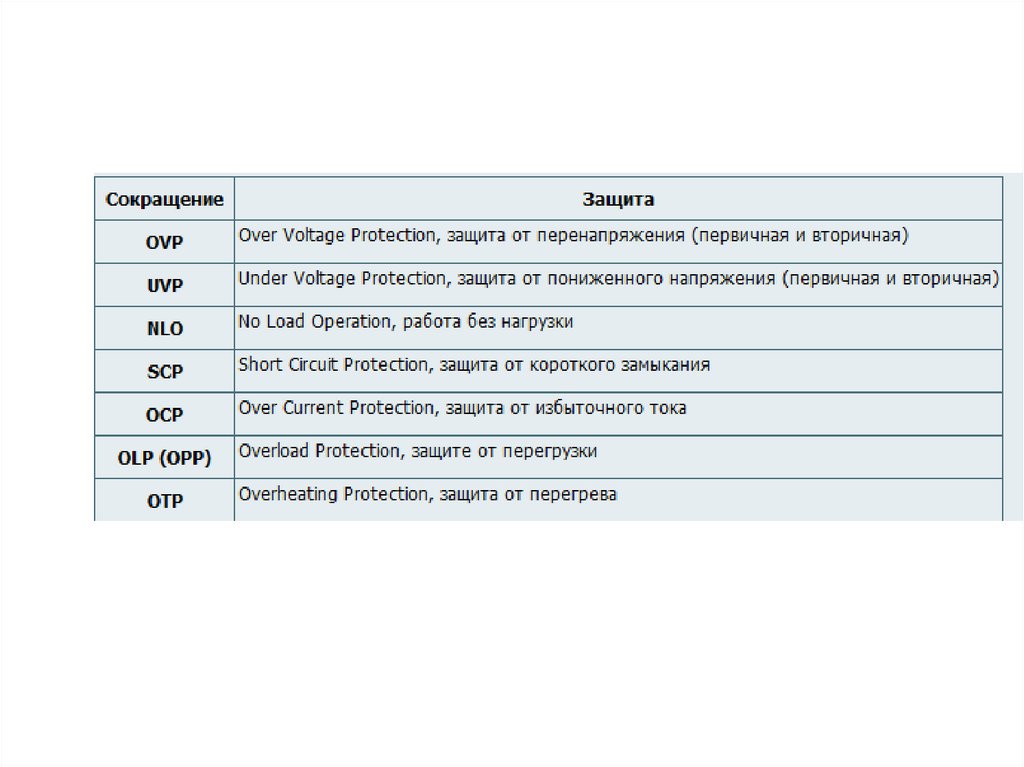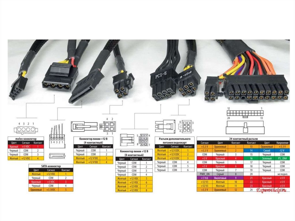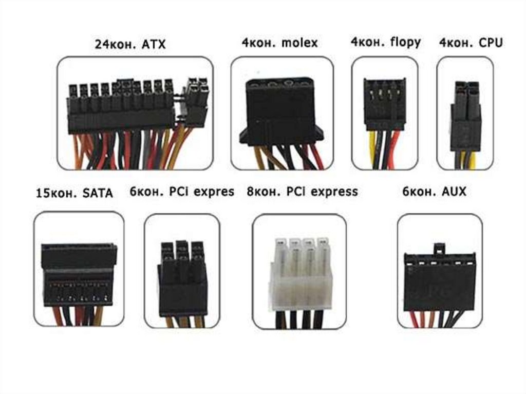 выходные напряжения ±5, ±12, +3,3 Вольт, а также +5 Вольт дежурного режима (англ.