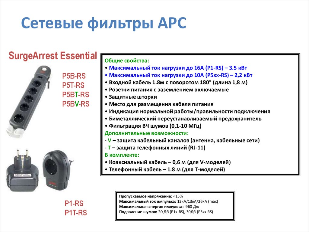 Конструктивные особенности Отсоединяющиеся кабели питания