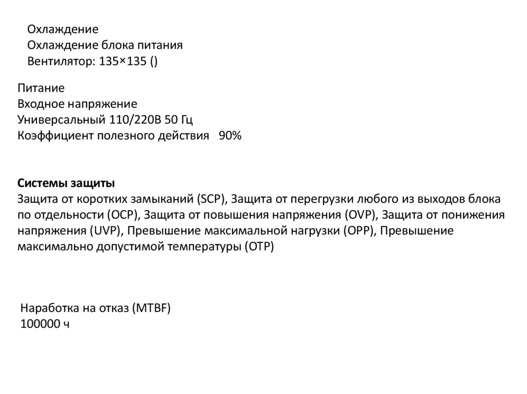 80 PLUS Gold, EPS12V Версия 2.92, ATX12V Версия 2.3