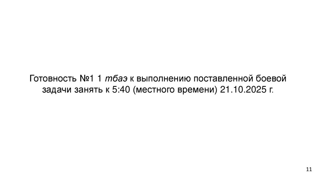 Готовность №1 1 тбаэ к выполнению поставленной боевойзадачи занять к 5:40 (местного времени) 21.10.2025 г.