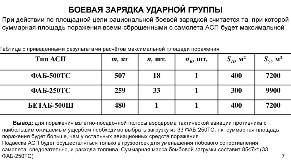 Вывод: для поражения взлетно-посадочной полосы аэродрома тактической авиации противника с