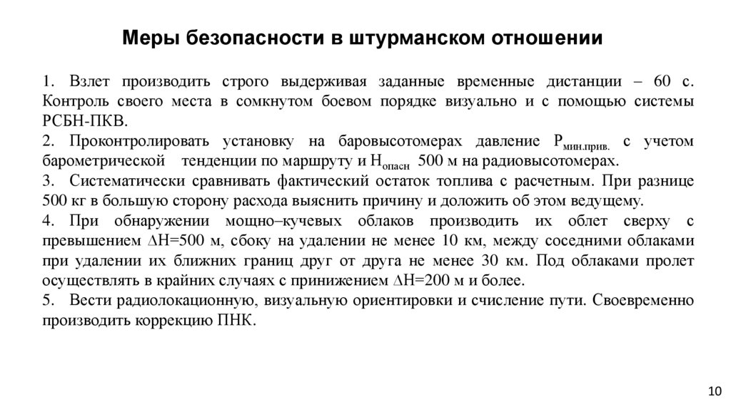 Меры безопасности в штурманском отношении1. Взлет производить строго выдерживая заданные временные дистанции – 60 с.