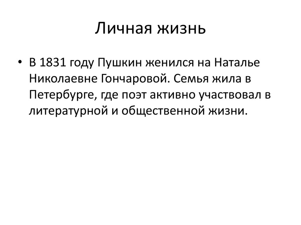 Личная жизнь• В 1831 году Пушкин женился на Наталье
