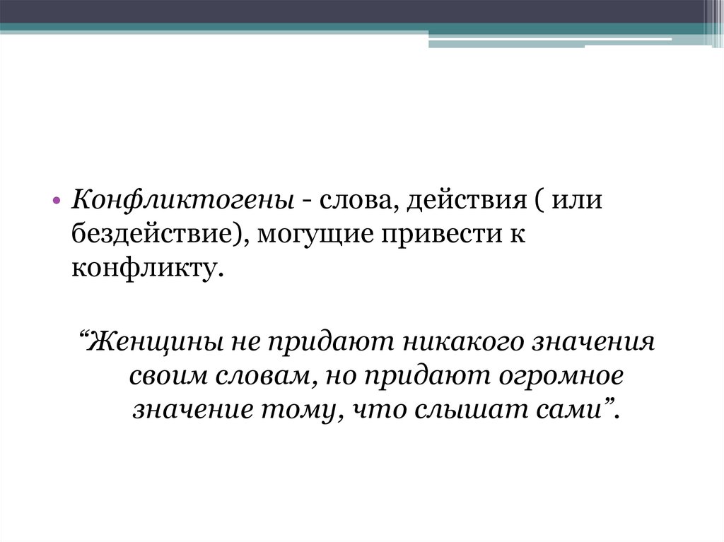 • Конфликтогены - слова, действия ( илибездействие), могущие привести к