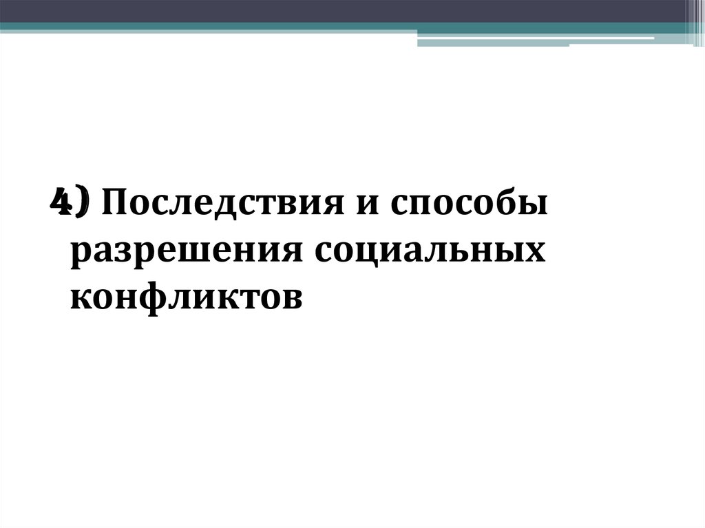 4) Социальный конфликт — это высшая стадия развития противоречий в