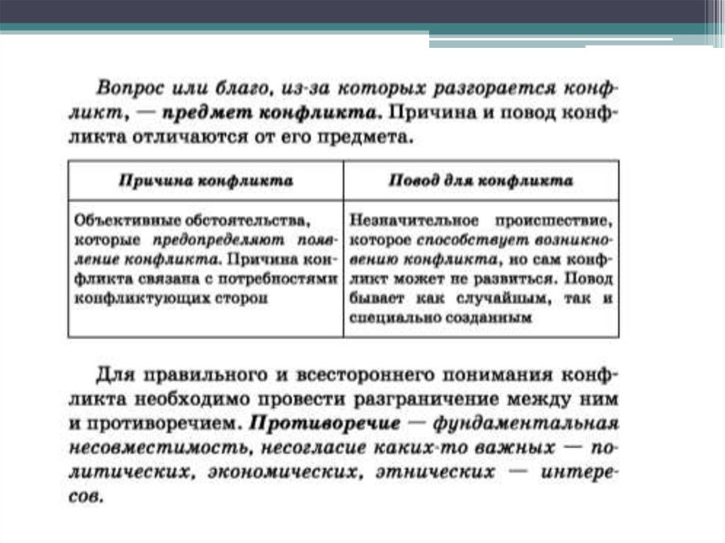 1) Объективные противоречия социальных конфликтов обусловлены явлениями
