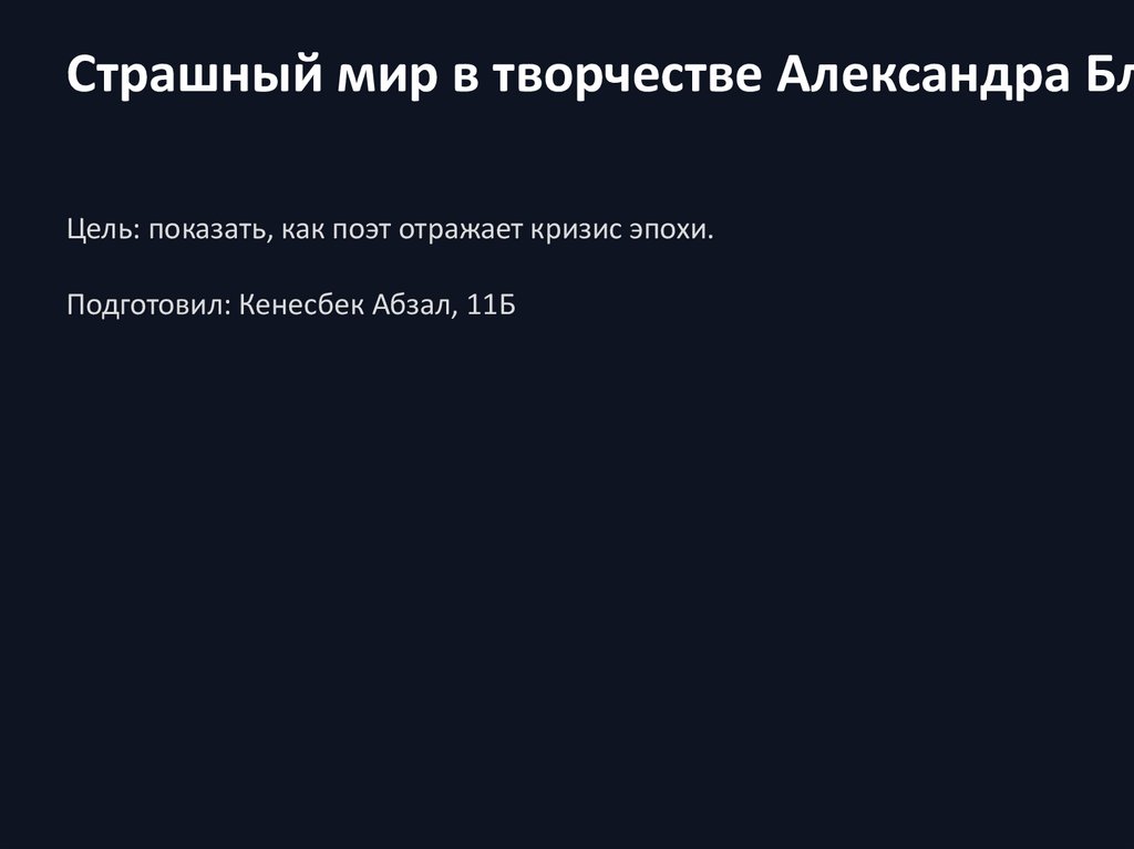 Страшный мир в творчестве Александра БлЦель: показать, как поэт отражает кризис эпохи.