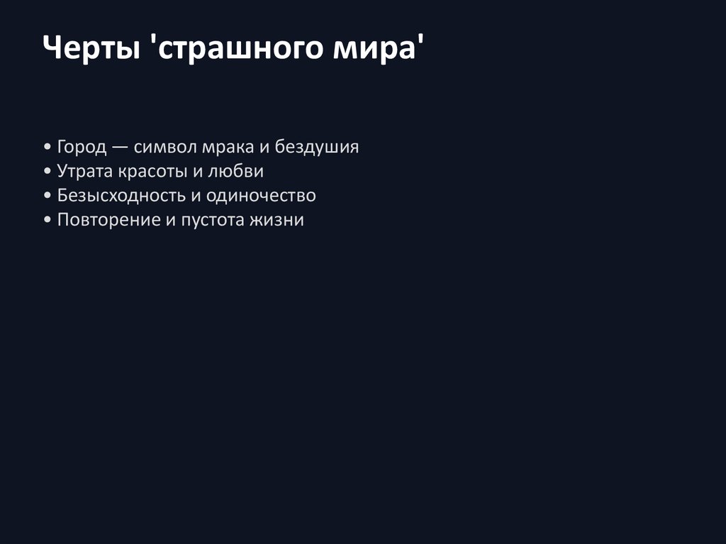 Черты 'страшного мира'• Город — символ мрака и бездушия