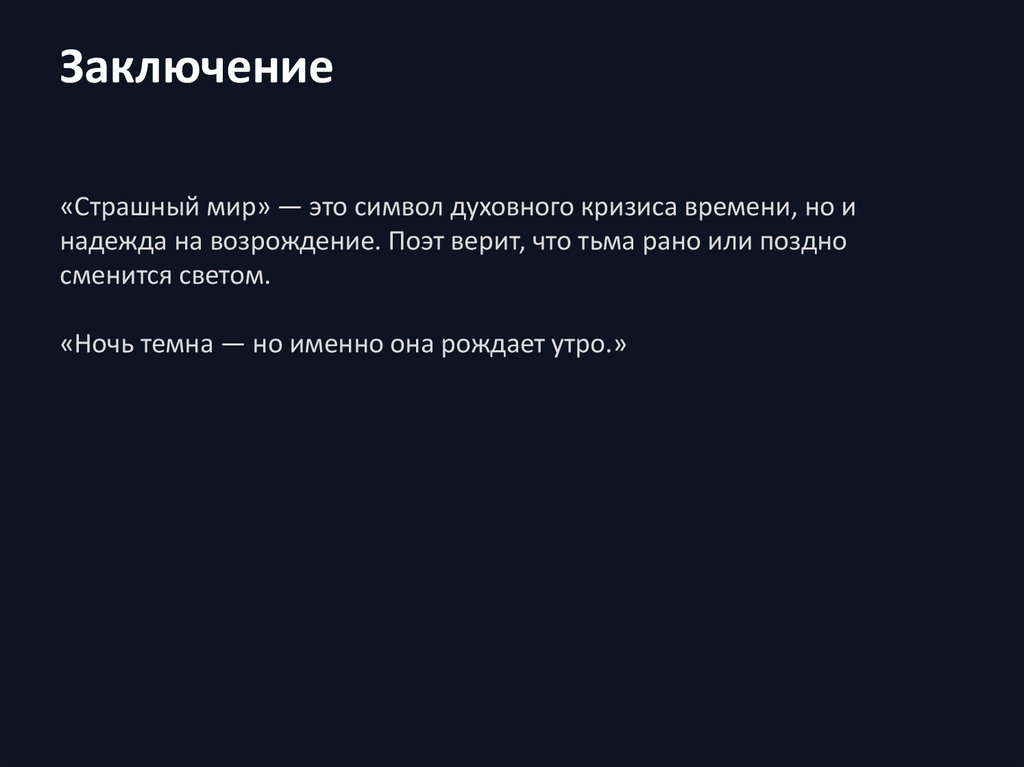 Заключение«Страшный мир» — это символ духовного кризиса времени, но и