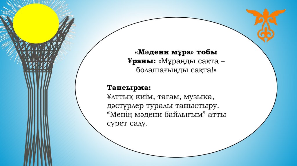 «Мәдени мұра» тобыҰраны: «Мұраңды сақта –