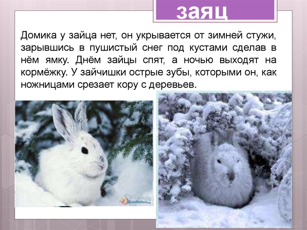 кормёжку. У зайчишки острые зубы, которыми он, как
