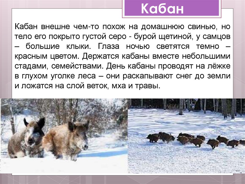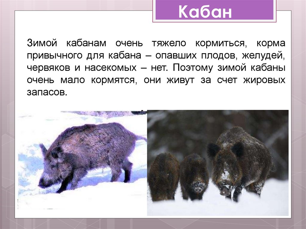 червяков и насекомых – нет. Поэтому зимой кабаны