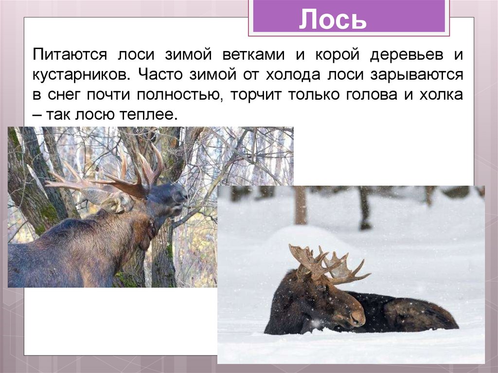 ЛосьПитаются лоси зимой ветками и корой деревьев и