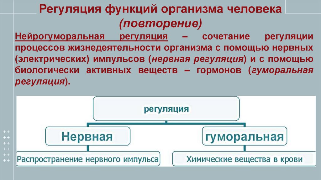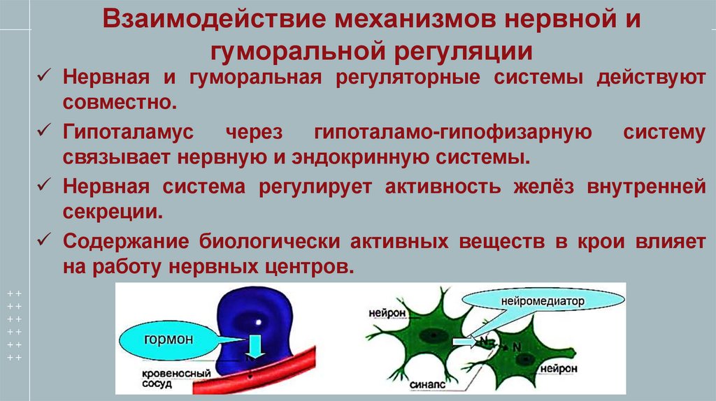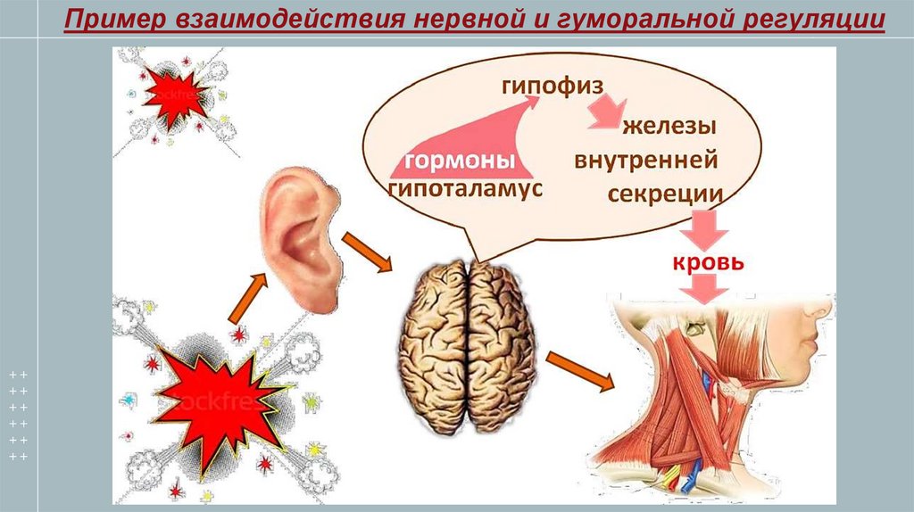 Пример взаимодействия нервной и гуморальной регуляции12.