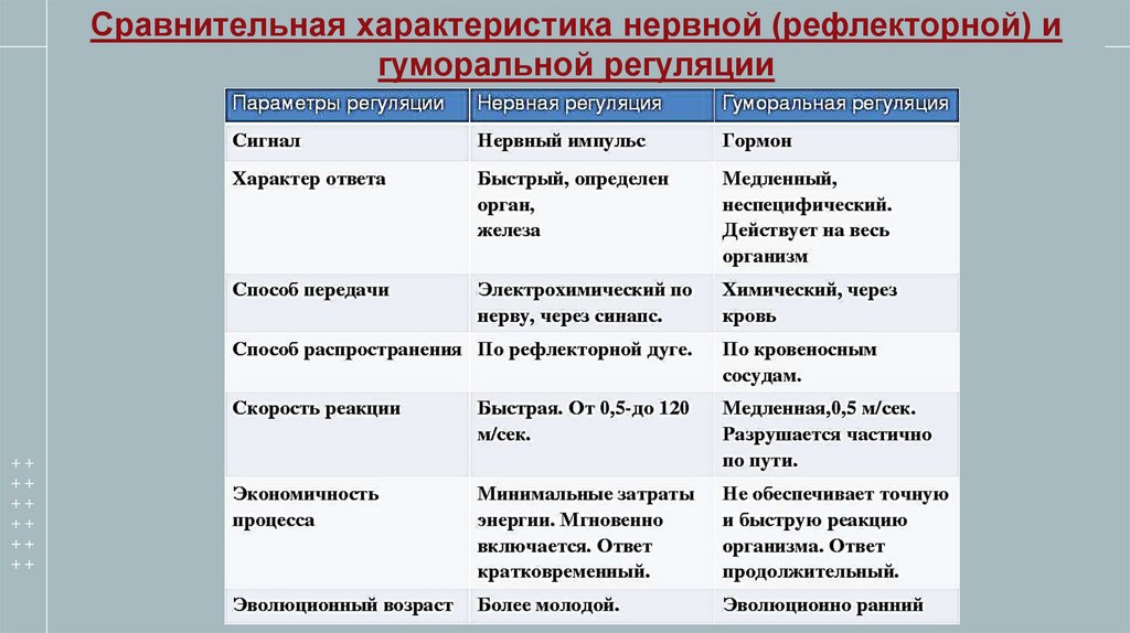 Сравнительная характеристика нервной (рефлекторной) игуморальной регуляции