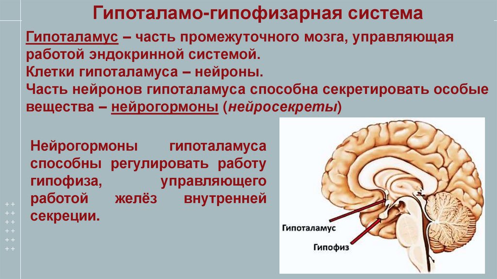 Гипоталамо-гипофизарная системаГипоталамус – часть промежуточного мозга, управляющая