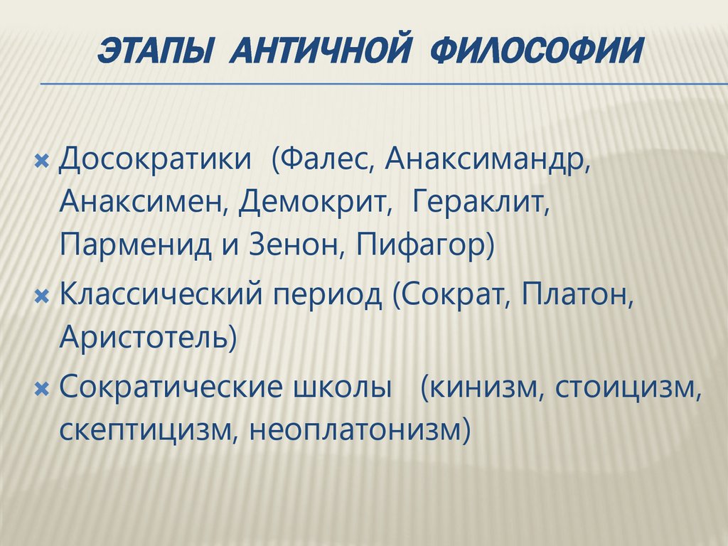 ЭТАПЫ АНТИЧНОЙ ФИЛОСОФИИТ Досократики