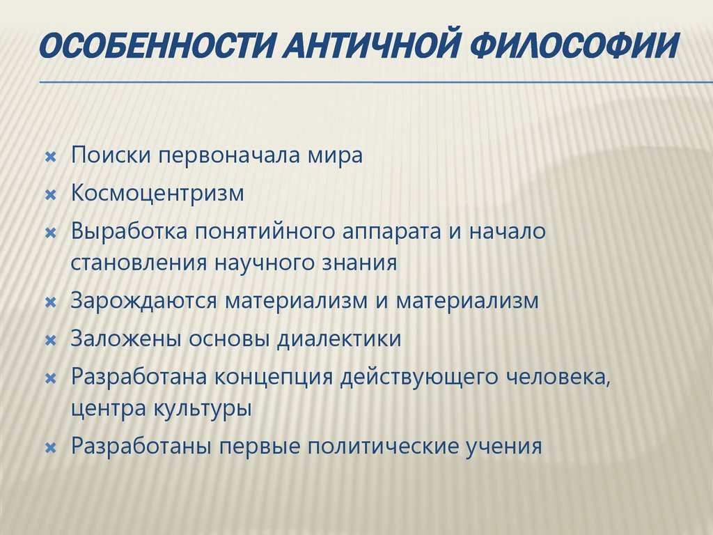 ОСОБЕННОСТИ АНТИЧНОЙ ФИЛОСОФИИТ
