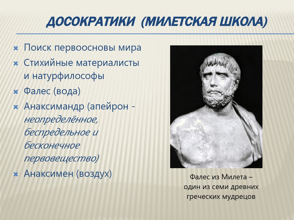 ДОСОКРАТИКИ (МИЛЕТСКАЯ ШКОЛА)Т