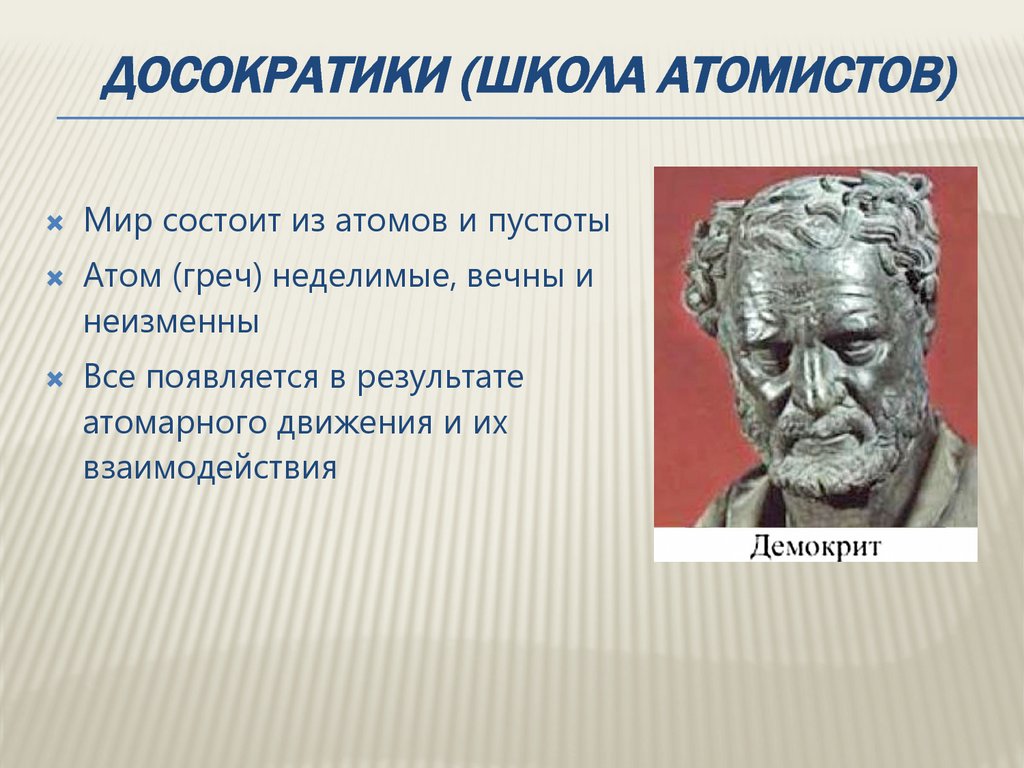 ДОСОКРАТИКИ (ШКОЛА АТОМИСТОВ)Т