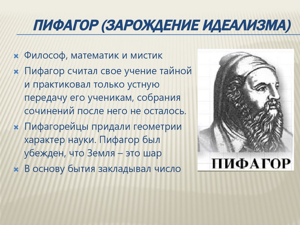 ПИФАГОР (ЗАРОЖДЕНИЕ ИДЕАЛИЗМА)Т