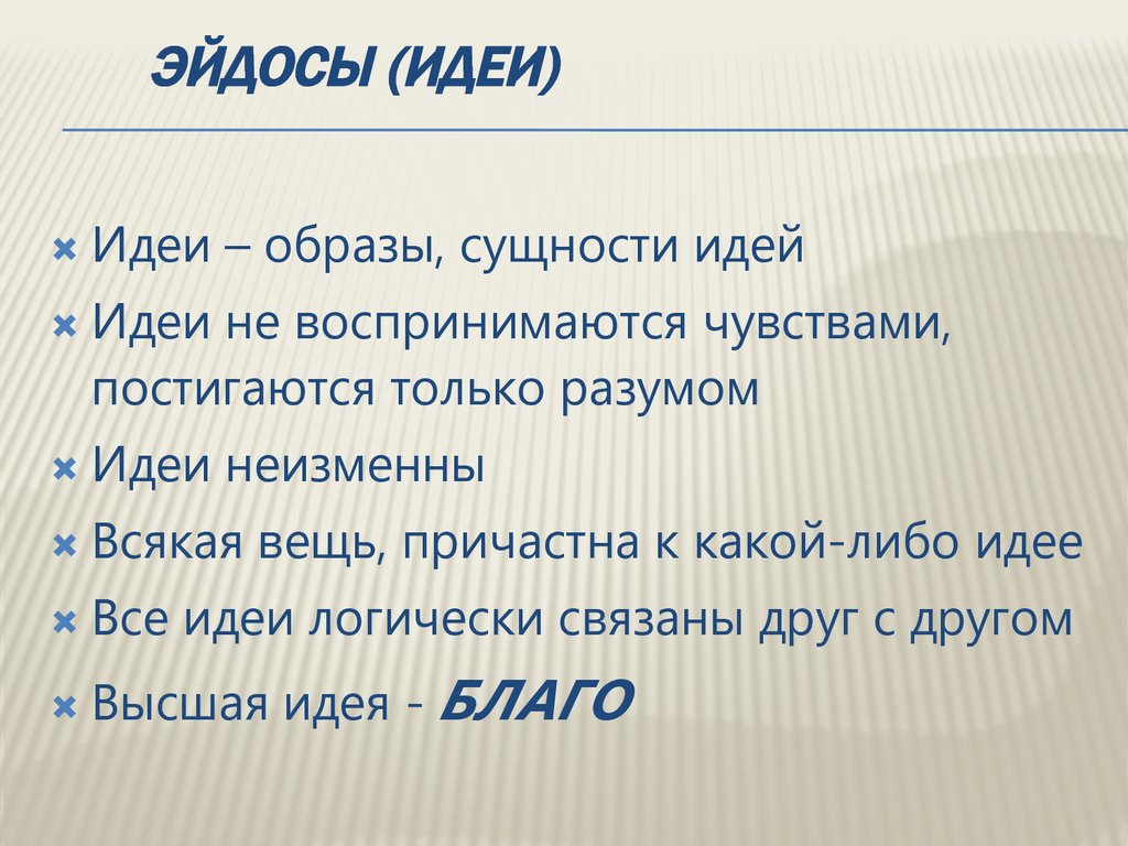 ЭЙДОСЫ (ИДЕИ)Т Идеи – образы, сущности идей