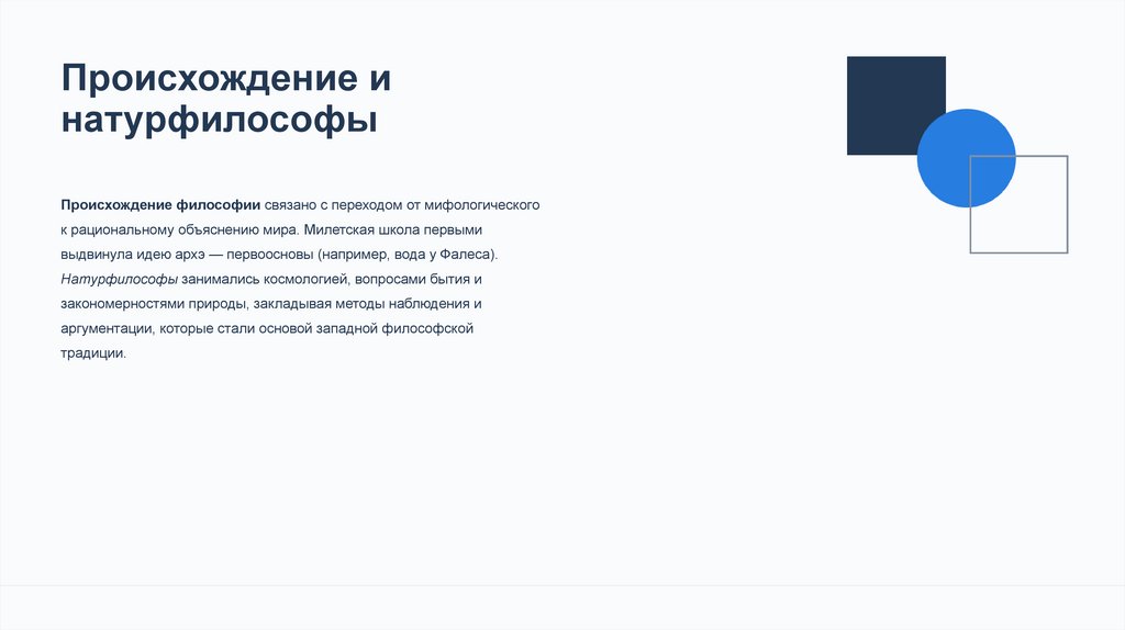 выдвинула идею архэ — первоосновы (например, вода у Фалеса).