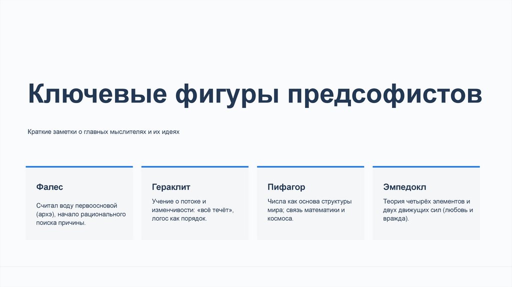 Ключевые фигуры предсофистовКраткие заметки о главных мыслителях и их идеях