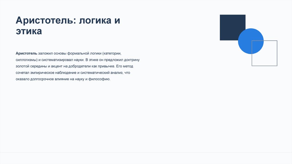 силлогизмы) и систематизировал науки. В этике он предложил доктрину